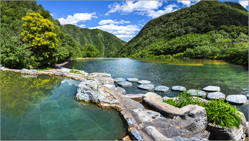 山水相依,映楸池、思親湖雙湖映照,水長城、錯長城機緣巧合,環擁于此;九座雄峰環伺鼎列,造就不可多得之靈山秀水。